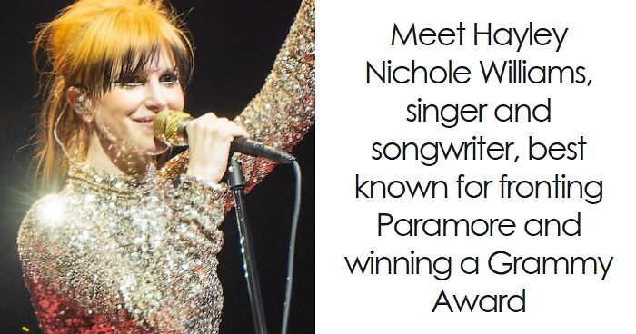 Hayley Nichole Williams is an American singer and songwriter, recognized for her powerful vocals and vibrant stage presence. She effortlessly blends pop-punk energy with introspective lyricism, influencing a generation.