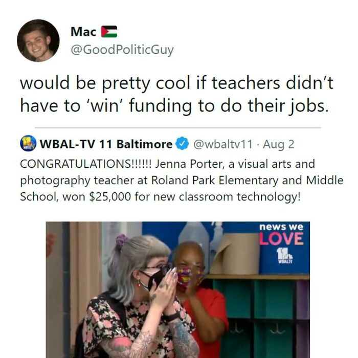 Load More Replies...This is LITERALLY the right wing's ideal. Having individuals pick up the slack in lieu of having actual programs in place to help people in need. Notice how many of these are Health Care and School related. Kids should have free school meals. EVERYONE should have free health care. A living wage should be the BARE MINIMUM (I.e. Minimum wage) that someone needs to live a life without having to struggle or have multiple jobs to get by. But, EVERYTHING has to be monetized so that people who don't have the means to change the system or are so integrated into a system that they'll vote against things that would better everyone's lives can provide for the upper earners and stockholders. It's sick, and the fact that so many people are blind to how easy it would be to just do the things needed to better life in the US is heartbreaking. But, lobby on and distract with "social issues" that people honestly only care about because they're fed the outrage to do so.
