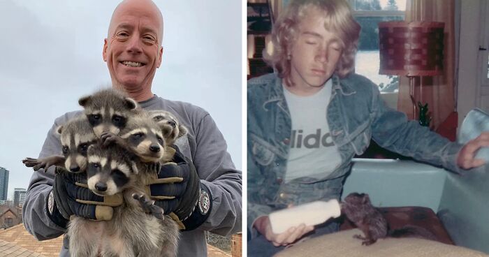 He wrote: “One particularly memorable raccoon rescue story that touches my heart and exemplifies the mission of Gates Wildlife Control is the story of Mandy, a baby raccoon that I raised when I was 17 years old. She became my constant companion, following me everywhere and even learning to catch minnows and crayfish from a shallow pond I created for her.”