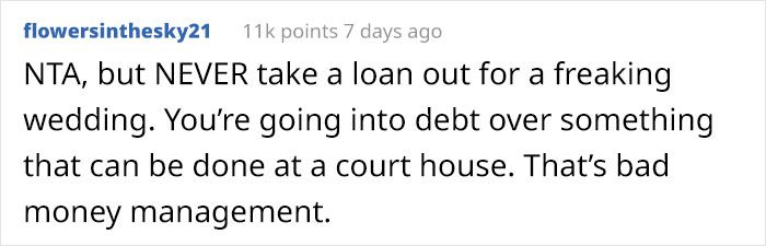 The author revealed that she was in complete shock when she read the comments: “After all the hate I got from my family, I was sure the comments would be ripping me to shreds, so I was relieved when I got voted NTA. I convinced myself that I was an awful person for doing it and was being selfish trying to clear my own debts. So I’m incredibly grateful for everyone who has shown support.”