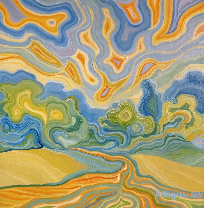 I consciously do not want to paint pain or war. Others do it. My reflections and dreams are aimed at the future, at improvement, and at peace. That's why I paint my dreams of independence and prosperity. Regardless of the goals, everything that is not said is reflected in the paintings. Sometimes it concerns colors or landscape composition.