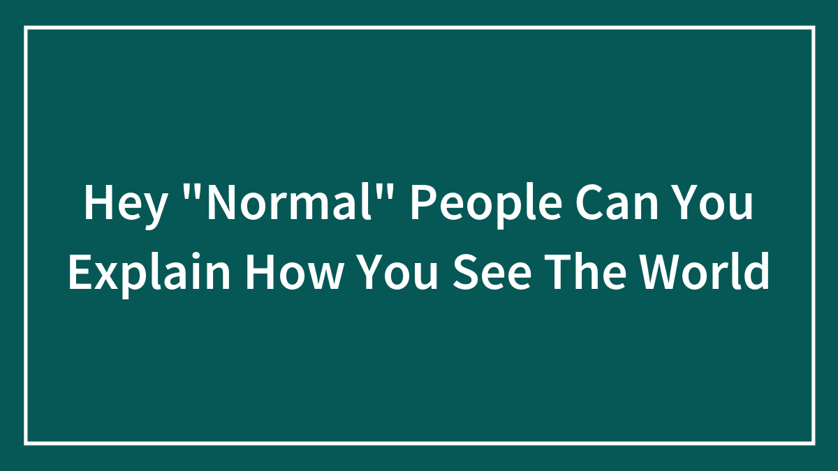 Hey “Normal” People Can You Explain How You See The World