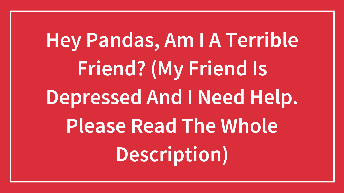 Hey Pandas, Am I A Terrible Friend? (My Friend Is Depressed And I Need Help. Please Read The Whole Description)