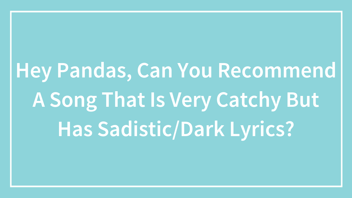Hey Pandas, Can You Recommend A Song That Is Very Catchy But Has Sadistic/Dark Lyrics? (Closed)
