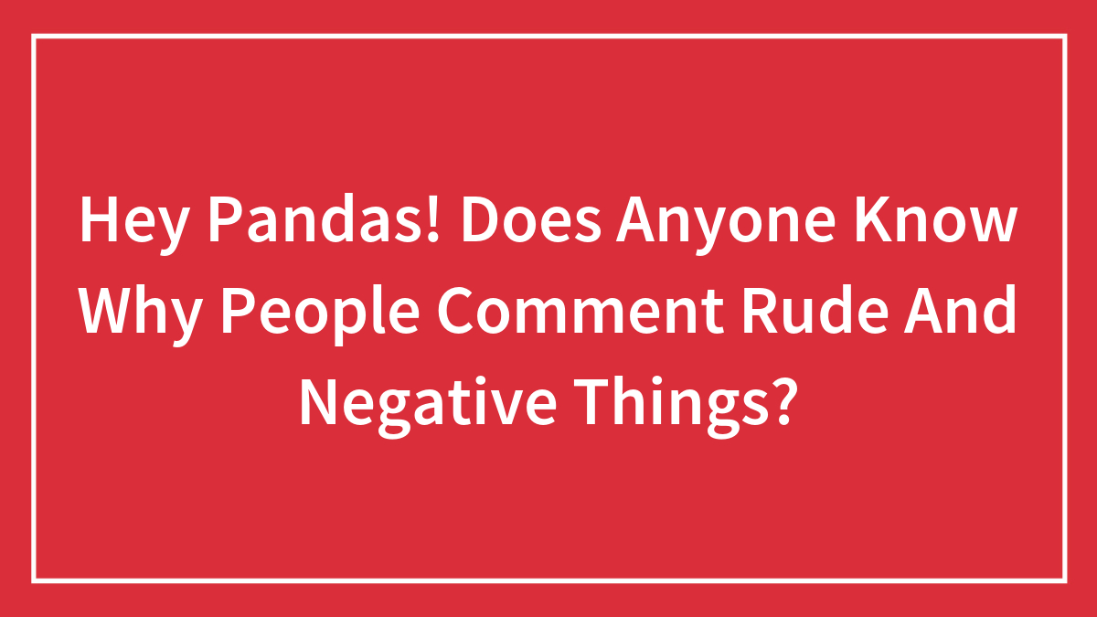 Hey Pandas! Does Anyone Know Why People Comment Rude And Negative Things?