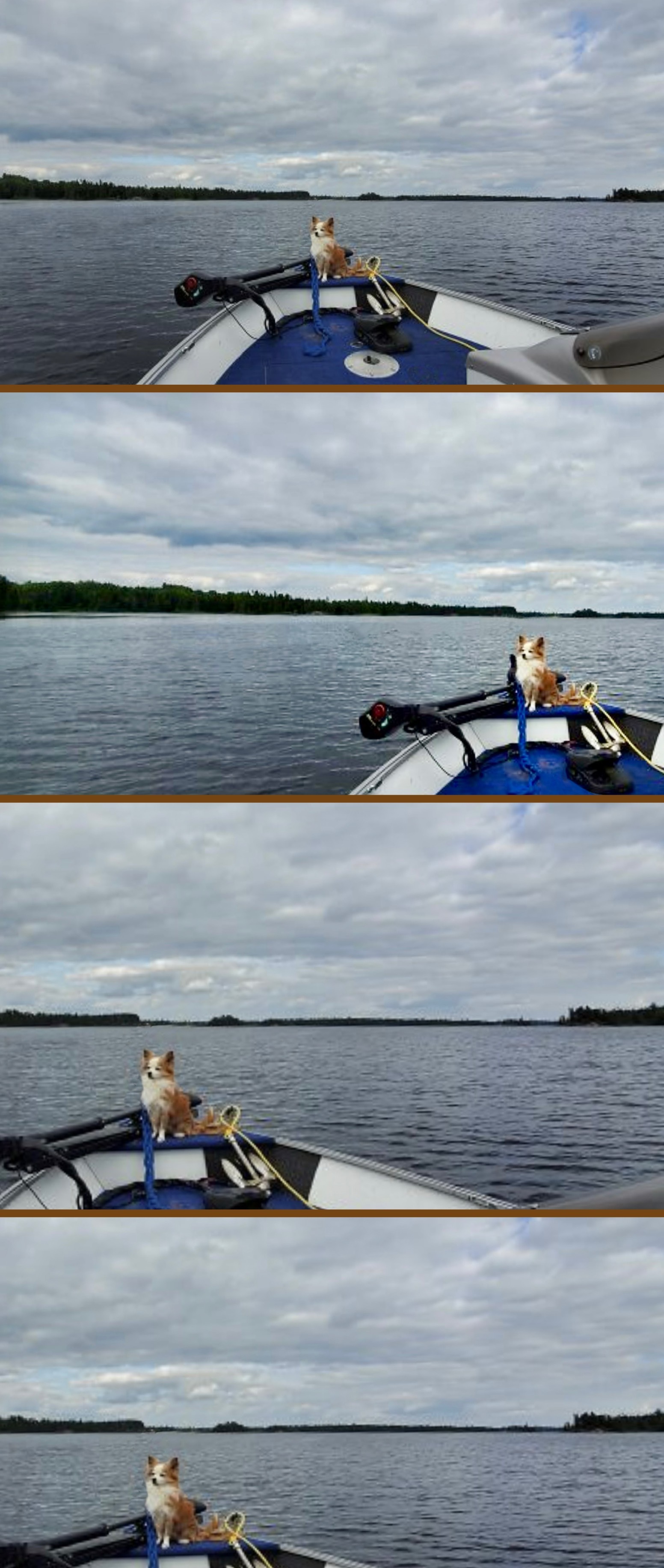 I really want to see this cropped and straightened. Archie is adorable so he needs to be the focus of the photo. I understand you probably like your boat too so it could be cropped as portrait mode to feature him and the boat, and skip some of the lake. BP only allows one photo per comment so I stitched them together. I edited out the other boat and wake because it was right above his head and he really just needs his ears up there. (I view “pricked” ears as the true form of dog ears but that’s because I’ve always had Northern dogs.) I tried to sharpen the image, which is plenty large, but that would take more time. I used only the native iOS photo editor, Retouch, and Smart Resize. I’m not sure what I’d use to de-pixelate the image overall since that can be a challenge. I cleaned his ears up a tiny bit with Retouch, although that’s not really the intended use of the app. Decentering him gives a closer crop without losing more clarity- IMG_3496-6...0-jpeg.jpg
