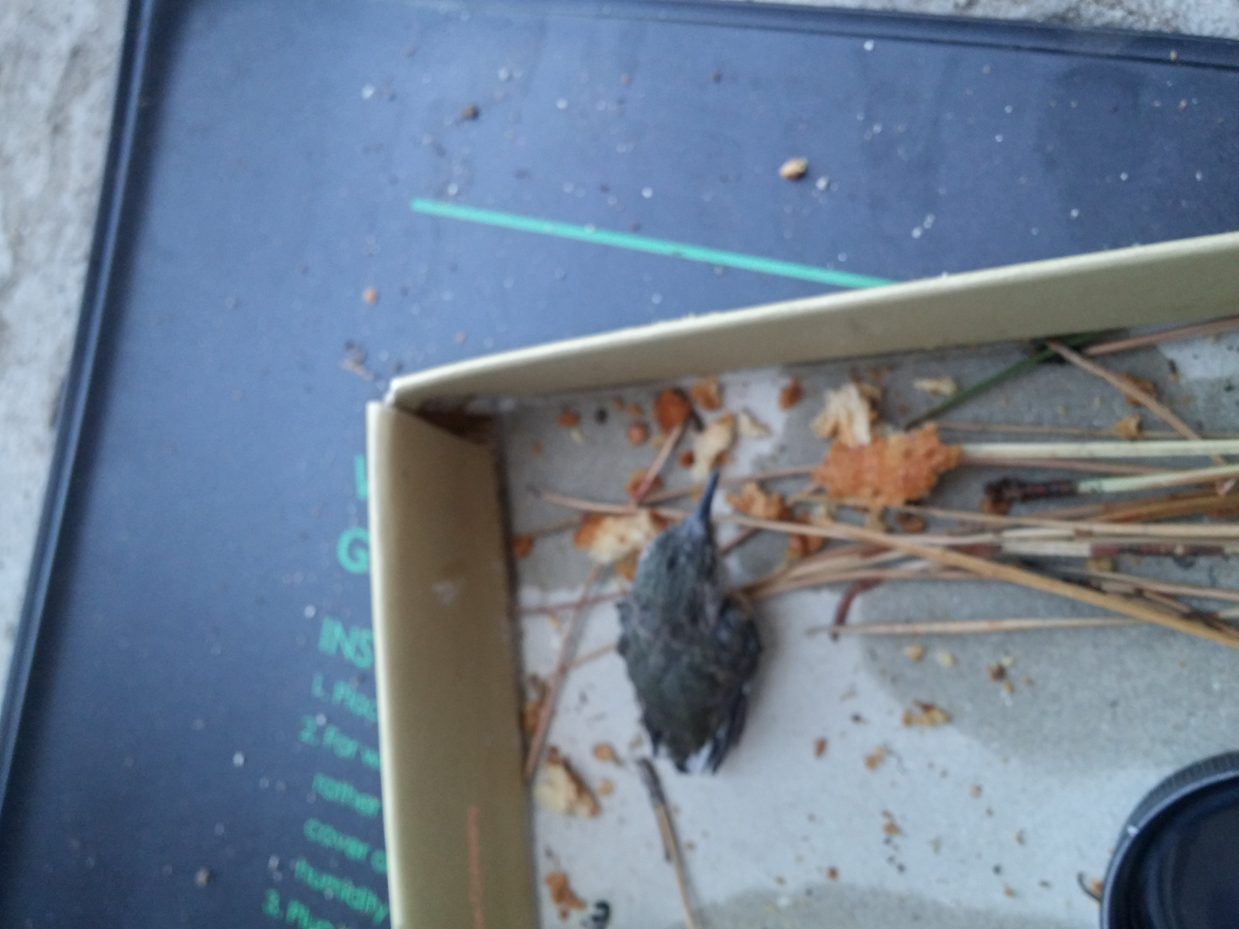 Help!! Ask for pics if needed.Put in showbox lid with pine neededles and bottle capwith water. small breadcrumb. Bird roughly .75 thumb lenth.