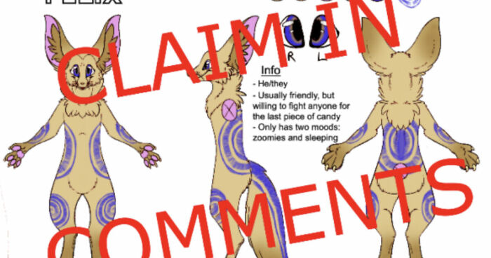 4. Reposts/art: If you claim one, you are free to repost the design, make your own art, modify the design, etc, as you now own the character. You do not need to credit me, but please don’t claim to have made the original design yourself. If you want to credit me, just put “Wild Bean (boredpanda)”