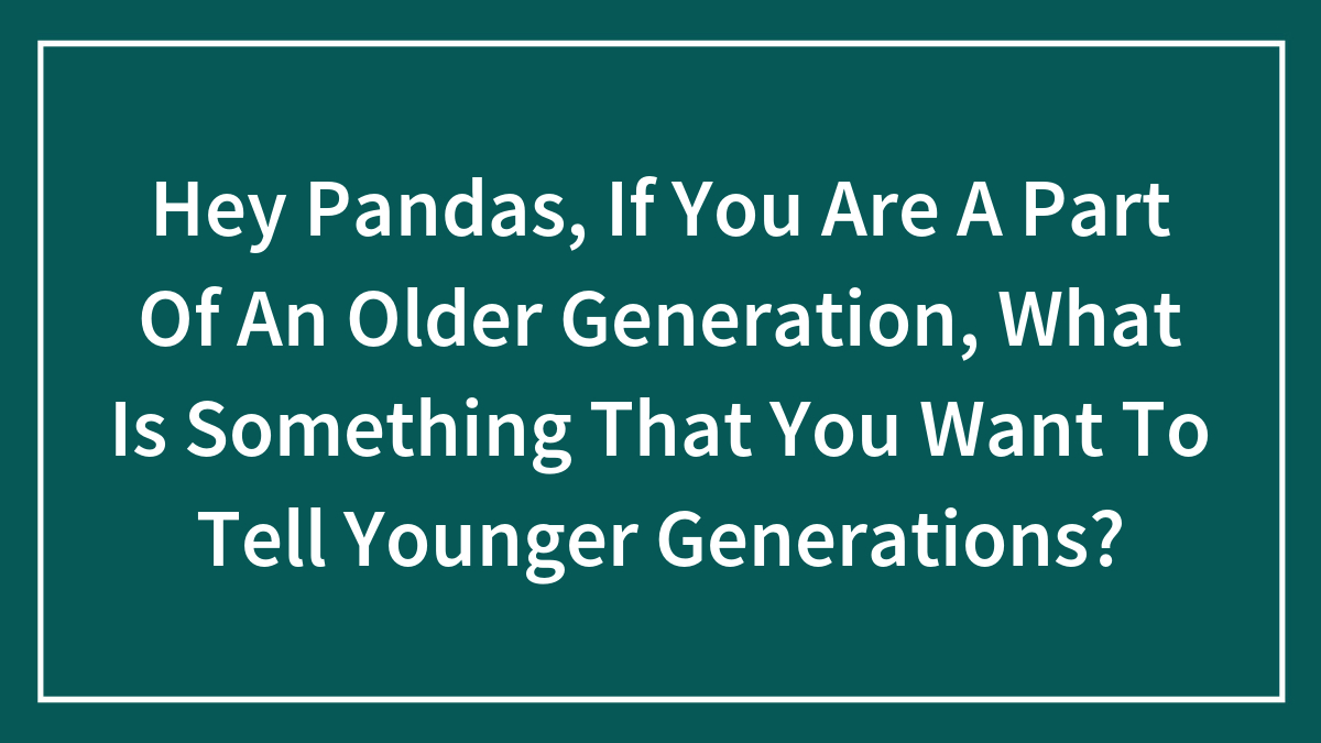 Hey Pandas, If You Are A Part Of An Older Generation, What Is Something That You Want To Tell Younger Generations? (Closed)