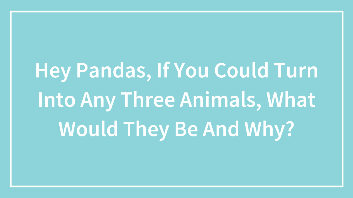 Hey Pandas, If You Could Turn Into Any Three Animals, What Would They Be And Why?