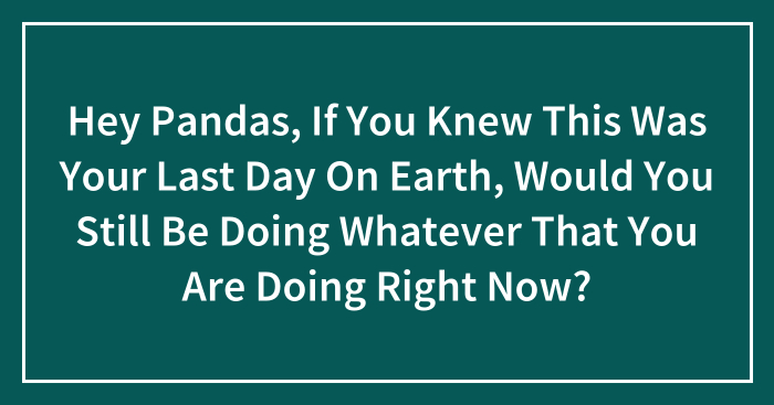Hey Pandas, If You Knew This Was Your Last Day On Earth, Would You Still Be Doing Whatever That You Are Doing Right Now? (Closed)