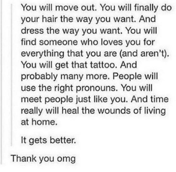 skater chick. im sorry that you have to go through this. im sorry that your life has not been treating you well. im here to say that you shouldn't give up and that you have my support. you are an amazing person with an amazing personality. im glad you are a person in this world, and frankly, i wish i knew u irl so we could be close friends. please talk to me if you ever need someone to listen, because my ears are always open. please stay dude. ur a great person