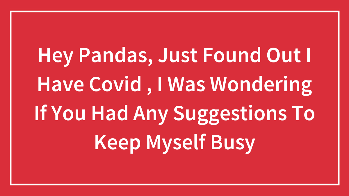 Hey Pandas, Just Found Out I Have Covid , I Was Wondering If You Had Any Suggestions To Keep Myself Busy
