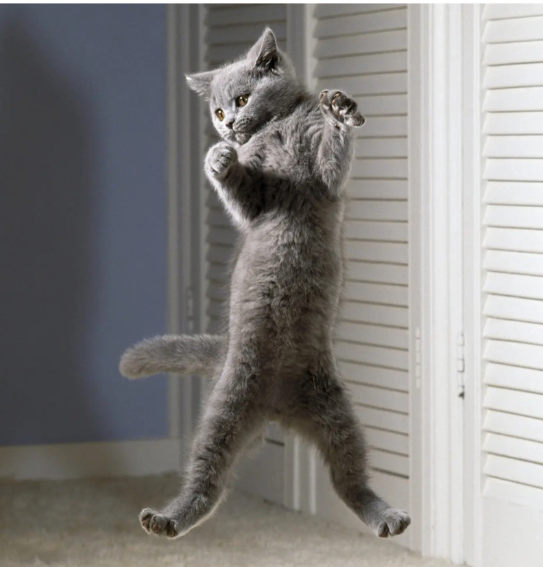 Photoshop this photo of this feline leaping in the air. Is it hugging someone? Is it leaping with joy after getting its fave burger from the diner? You decide!