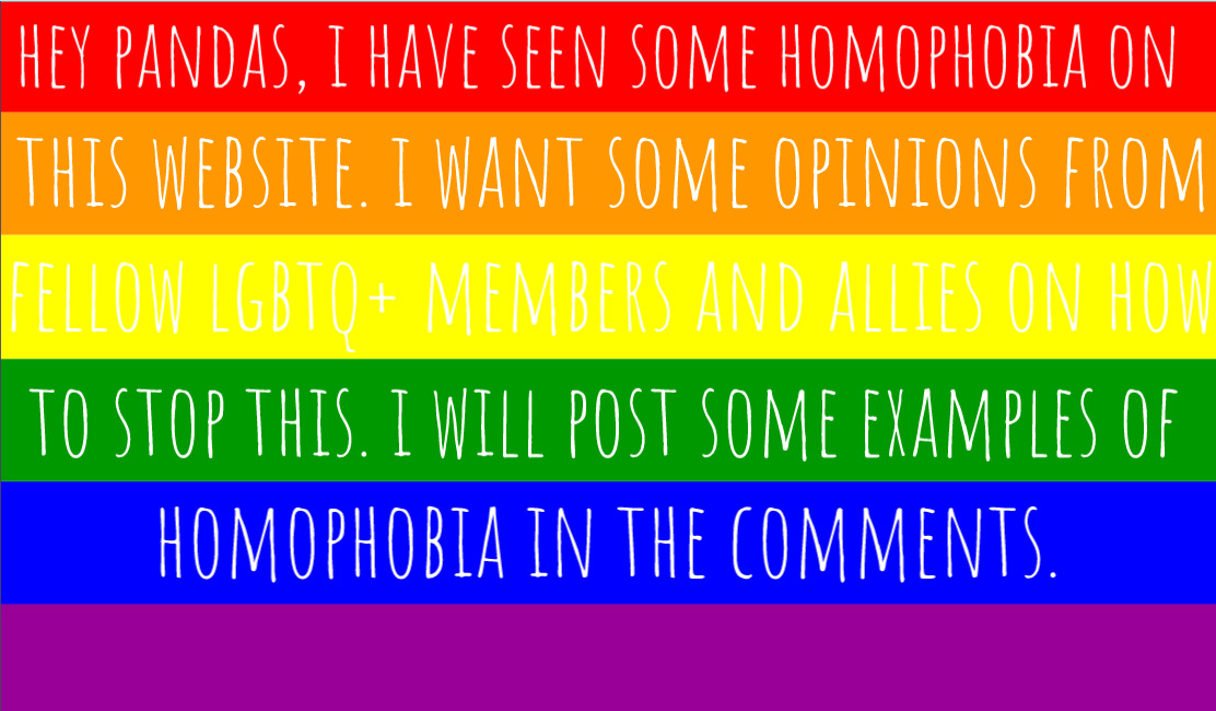 Zoey, I have generally found the Bored Pandas to be a positive and friendly group, but yes, I have seen comments that came across as homophobic, sexist &c. I'm not happy about it, but I'm also not very disturbed. LGBTQ+ people have made enormous progress in recent decades - the Stonewall riots were only fifty years ago. When I remember that I'm older than the LGBTQ Rights movement (I'm 51), I'm amazed at how much progress has been made. The Civil Rights movement started just a few years before I was born. Second Wave feminism really got going when I was a toddler. We have come a long way in a short time. That doesn't mean we're done, but it does mean we're on the road to victory. Illegitimi non carborundum.