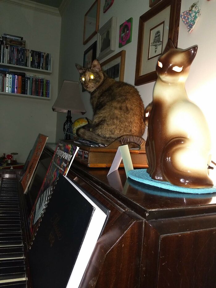 I walked in the kitchen and the freezer was open. Cat on top of the fridge with her paws on the freezer door looking at me as if to say, " look what I can do now."