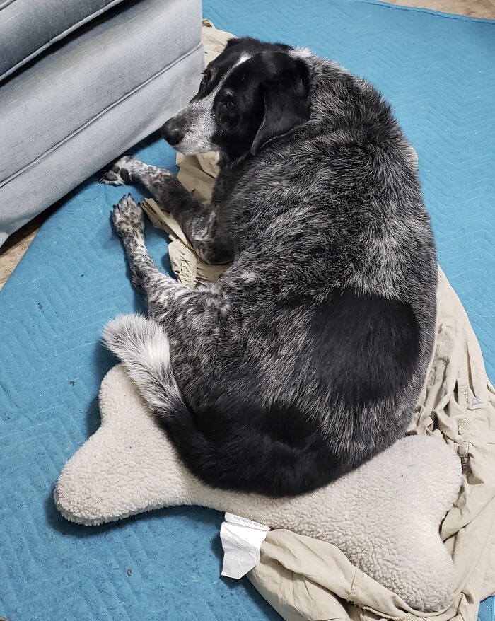Moonshine Blue. Almost 14 Years Old And Still Unsure What End Goes Where With His Favorite Pillow/Toy.