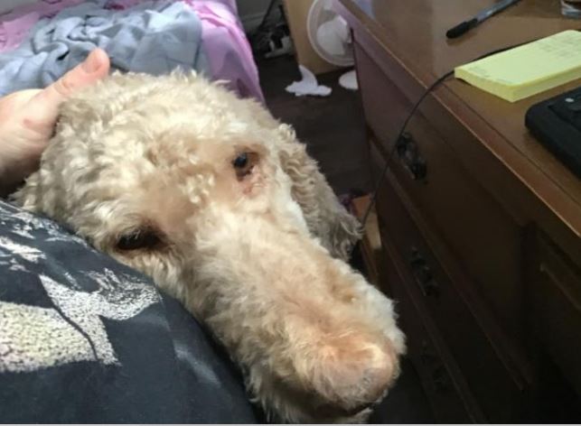 This Is Hoss My 7 Year Old Chunk Muffin, Who Is Mad As Hell About His "Cone"