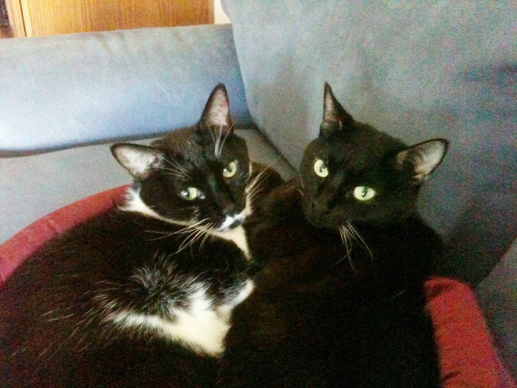 Aww! I have a pair of black and tuxedo cats as well! They're named Blackjack and Vegas Baby. vegas-blac...252821.jpg