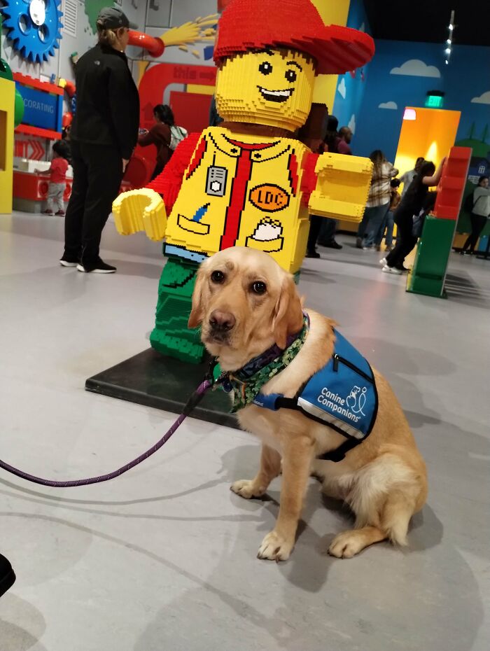 We were matched and graduated training together in February, this was our first big outing after graduation (in March). That's why she looks a little apprehensive, she's way more confident now. She's also just a baby, she turned 2 during our training.