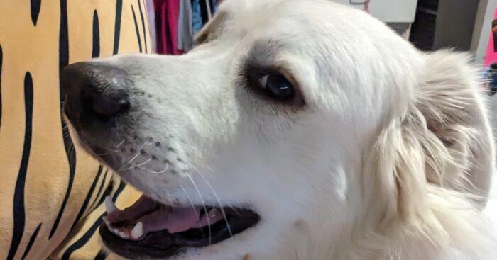 Lucy Can’t Figure Out How To Sit With All This Stuff In The Way