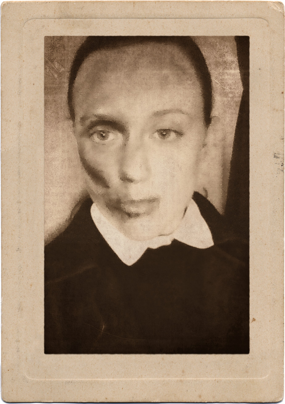 These are modern photos (of a woman?) with identical filters applied. Notice the upper right 'fold' in both corners and the identical noise patterns. Why do this?