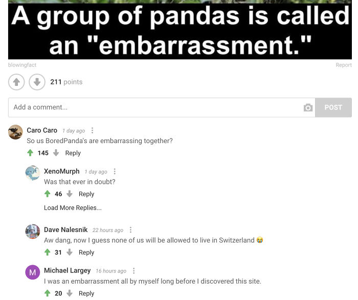...ok they literally changed my post title lol, I didn't know they could do that (I made it "time for another BP comments post" and they changed it to "share your favorite boredpanda comments")