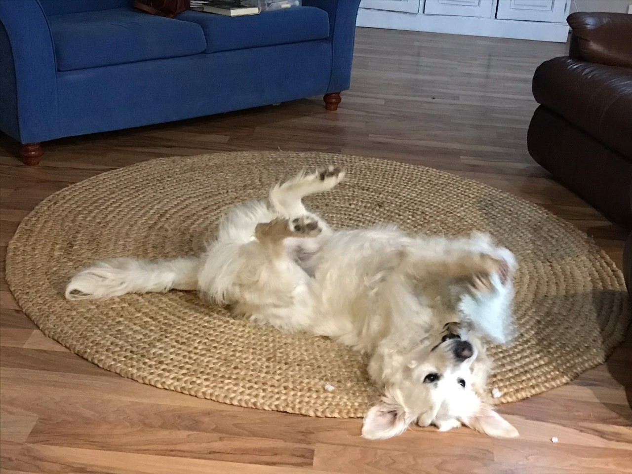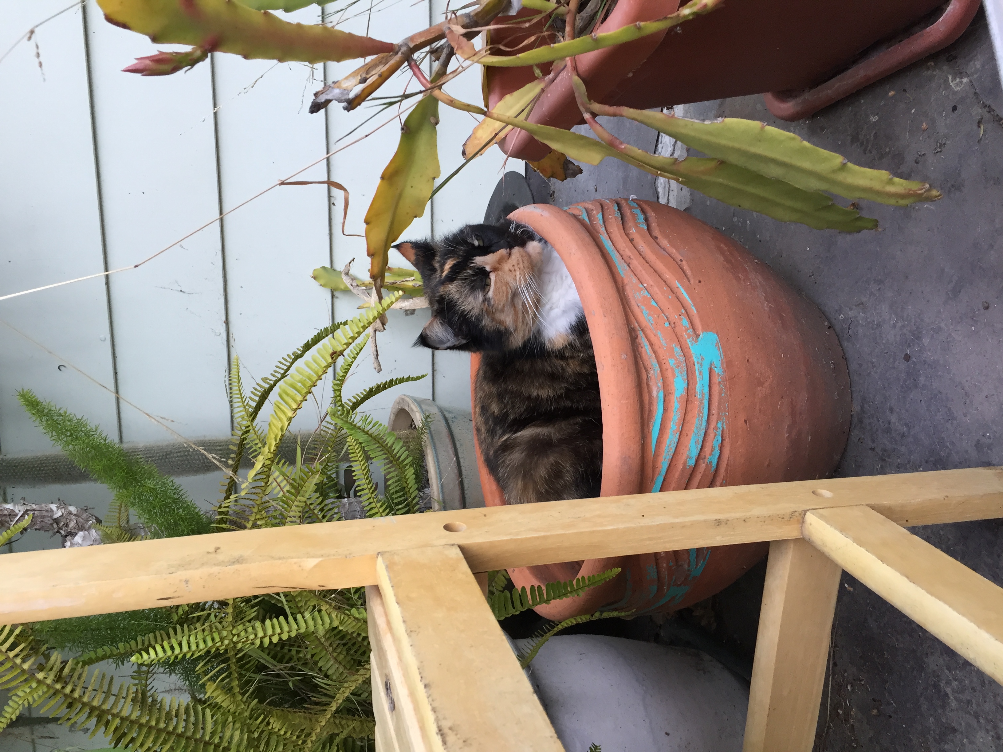 Jodie doing her best "I fits, I sits" Taken six years ago so the fur is a lot greyer now..