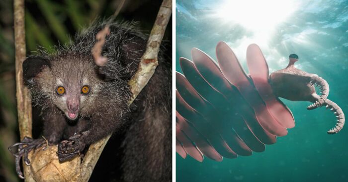 Aye Aye. They Have Long Fingers That They Use To Tap Trees And Scoop Insects Out Of Small Holes