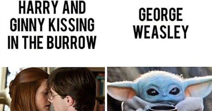 Load More Replies...Harry and Ginny: Kissing George Weasley: Morning. I can't stop laughing!!