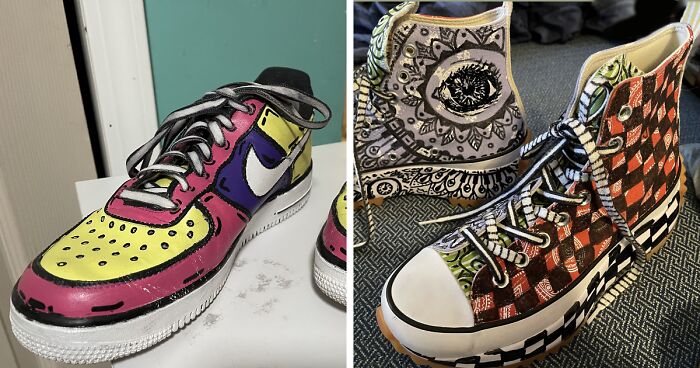 Here Are The First Shoes I Painted To Look Like Cartoons! (Please Ignore The Scratched Paint, I Didn’t Seal It Properly)