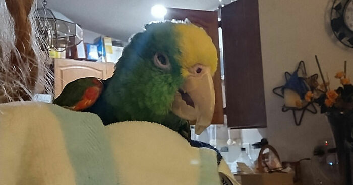 I would like to see pictures of your oldest pet or pets. Don't forget to mention highlights about them. How they came to you, what crazy quirks they had (or have), age, etc, I've posted 3 pics of my Pan. Panama was a Panamanian Yellow Crown who lived to be about 70 - 72 years old! I rescued him when I was 18 and he was in his mid-30s. He loved to sing opera to Metallica! Quite the character, Pan would ask to shake hands, and if you didn't, then he would call you a chickensh*t. If there was a knock at the door, Pan would sa,y "Who is it? Come in!"...got me in trouble with court officials when I got divorced. And he would eat/shred my mail!I really miss him. Pan was the spice of my life. He's also the longest-lived pet I've ever had.Pandas, post your pics and tell me your stories about your oldest pet (pets)...