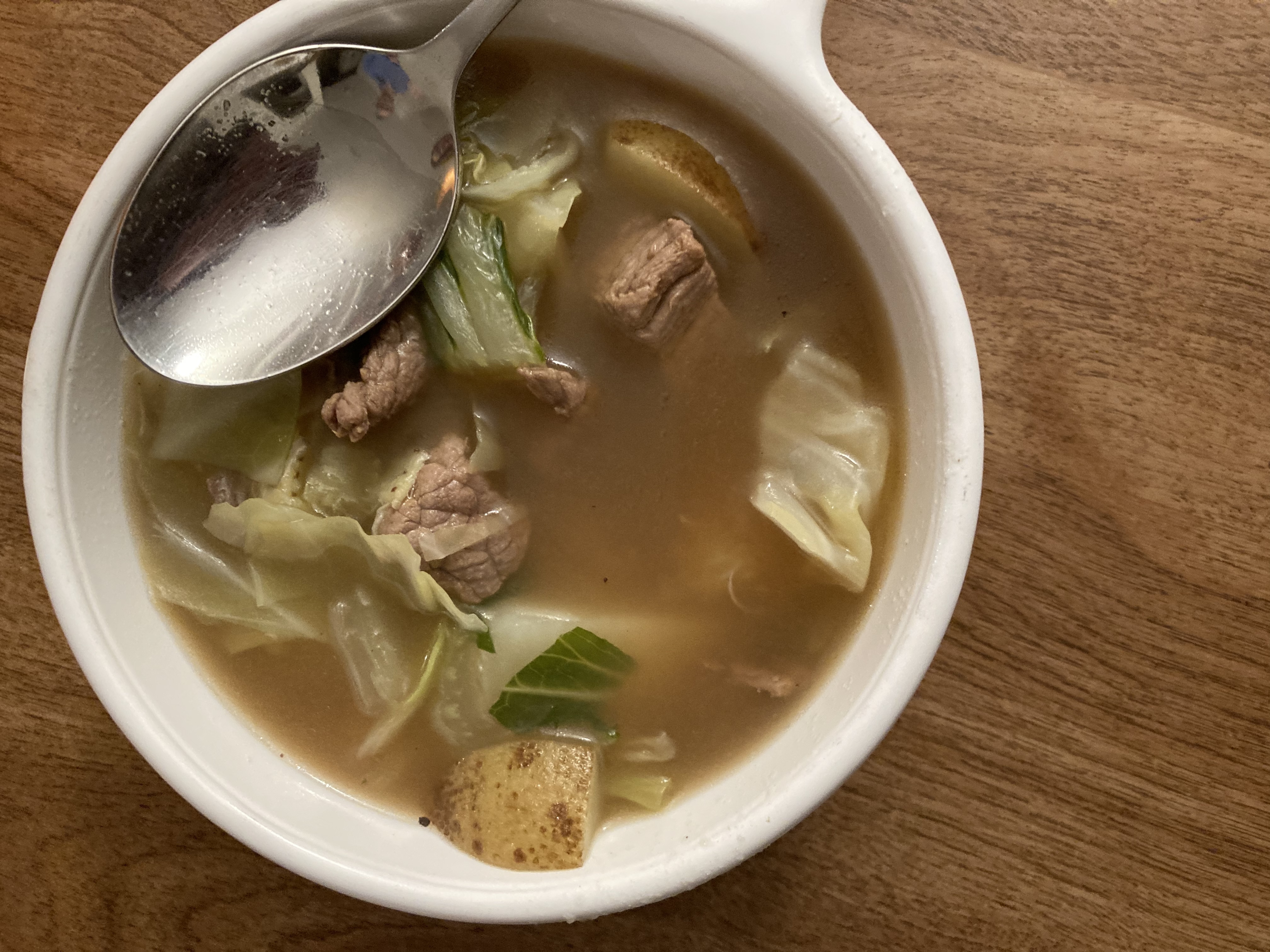 Thank you fellow 🐼! It is a Filipino dish! The dish consists of beef that is simmered in broth until tender. Potatoes, cabbage, bok choy and scallions are then added near the end of cooking. The dish is served with steamed rice , soy or fish sauce on the side depending on your taste. Eating this dish alway gives me a warm feeling. The dish has a deep beef flavour, savoury umami notes and sweetness from the vegetables.