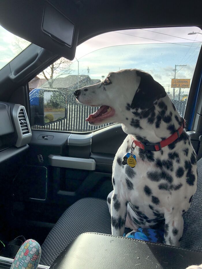 Our now elderly rescue Dalmatian, at the vet for her nail clipping! Can you tell how much she enjoys it? She has memorized all the nail techs and watches the door carefully for them. She doesn’t care a bit about the other animals going in and out - just the techs she knows cut her nails. Since she has been coming to the same vet for 10 years now, she has them down pat. Good thing it’s a quick process. I’m going to miss her so much.