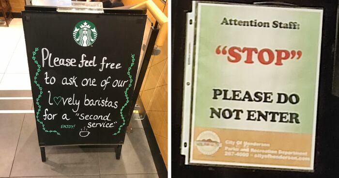 Images of people misunderstanding what quotation marks are for or placing them weirdly. Look at the images if you're confused.
