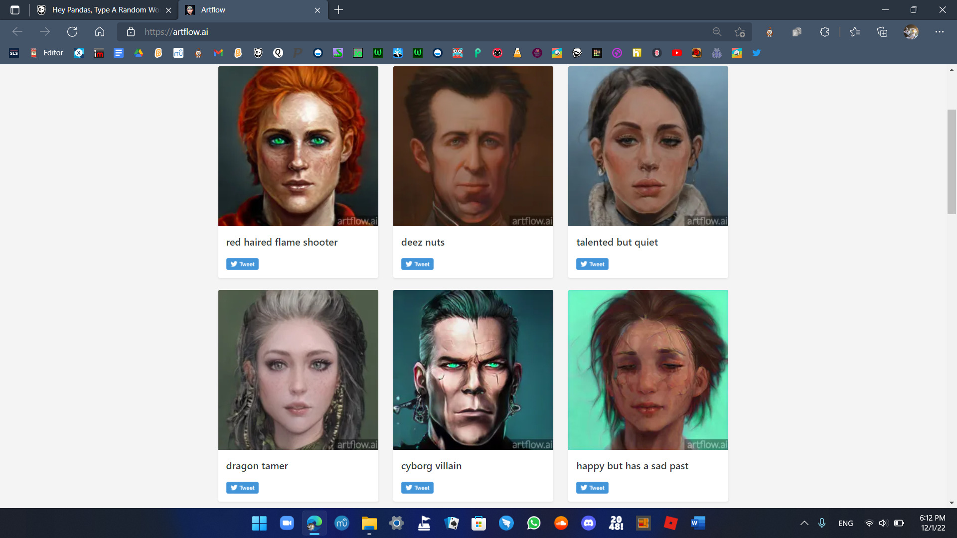 If you type in any word it makes a character of it. The more random the word, the funnier it gets. Try silly things like "sprouts", "odd socks", or "aardvark" and it will make a portrait!
