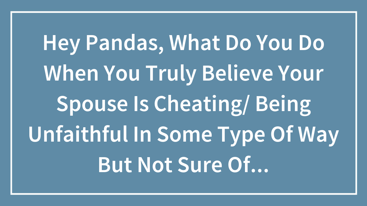 Hey Pandas, What Do You Do When You Truly Believe Your Spouse Is Cheating/ Being Unfaithful In Some Type Of Way But Not Sure Of How Exactly?