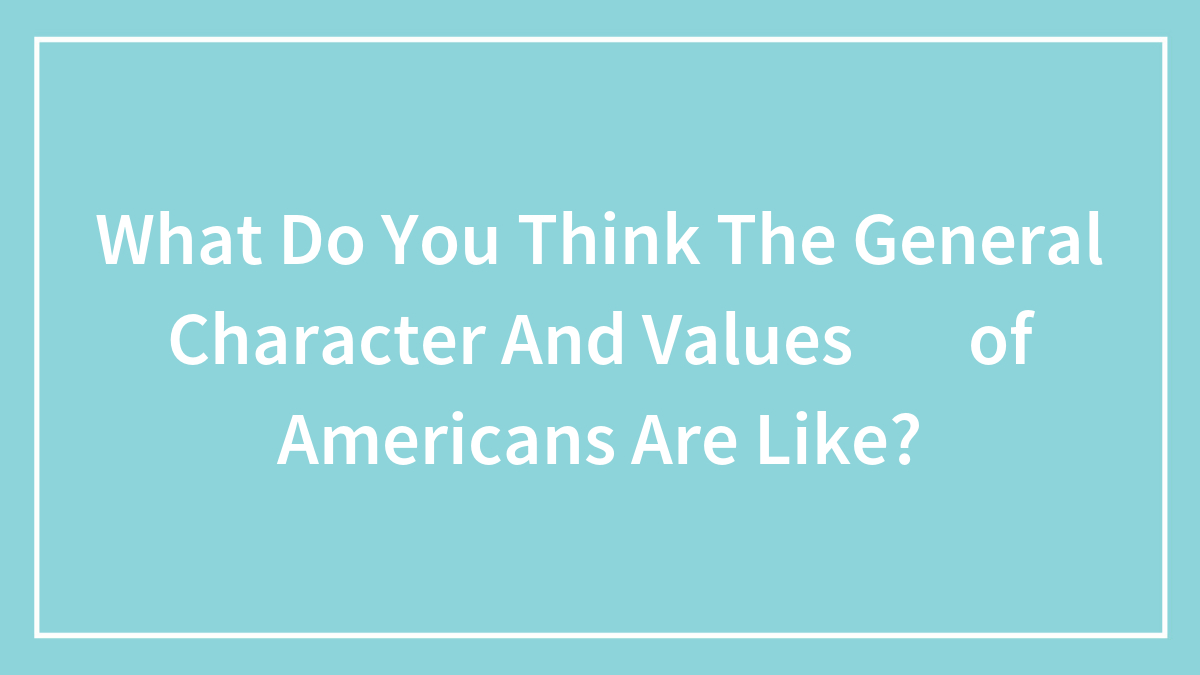 Hey Pandas, What Do You Think The General Character And Values Of Americans Are Like?