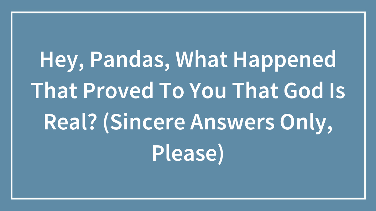 Hey, Pandas, What Happened That Proved To You That God Is Real? (Sincere Answers Only, Please)