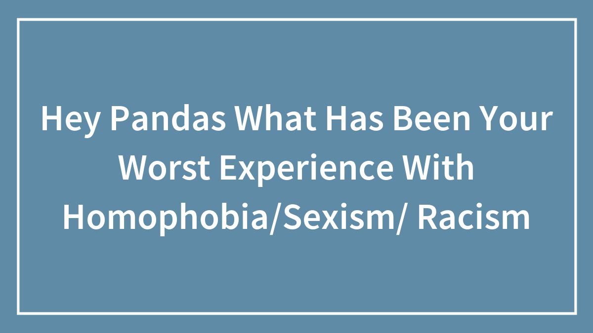 Hey Pandas What Has Been Your Worst Experience With Homophobia/Sexism/ Racism