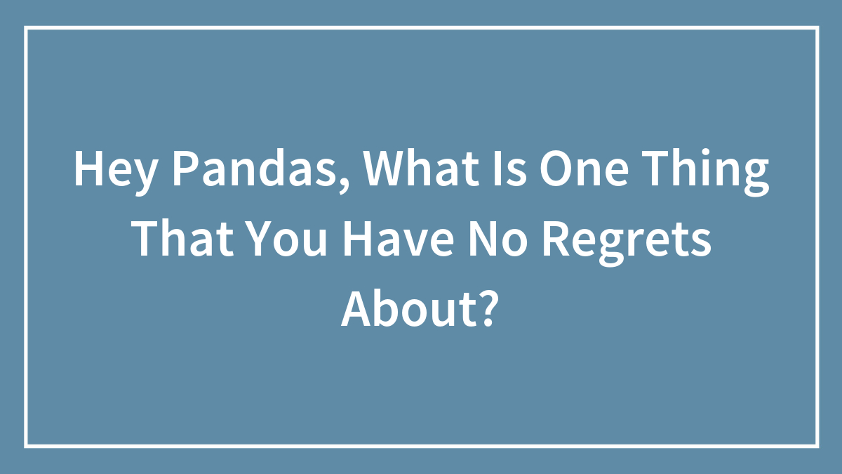 Everybody has regrets, and getting over them are important. What is one thing that you guys have absolutely no regrets about and are 100% glad you did/said.