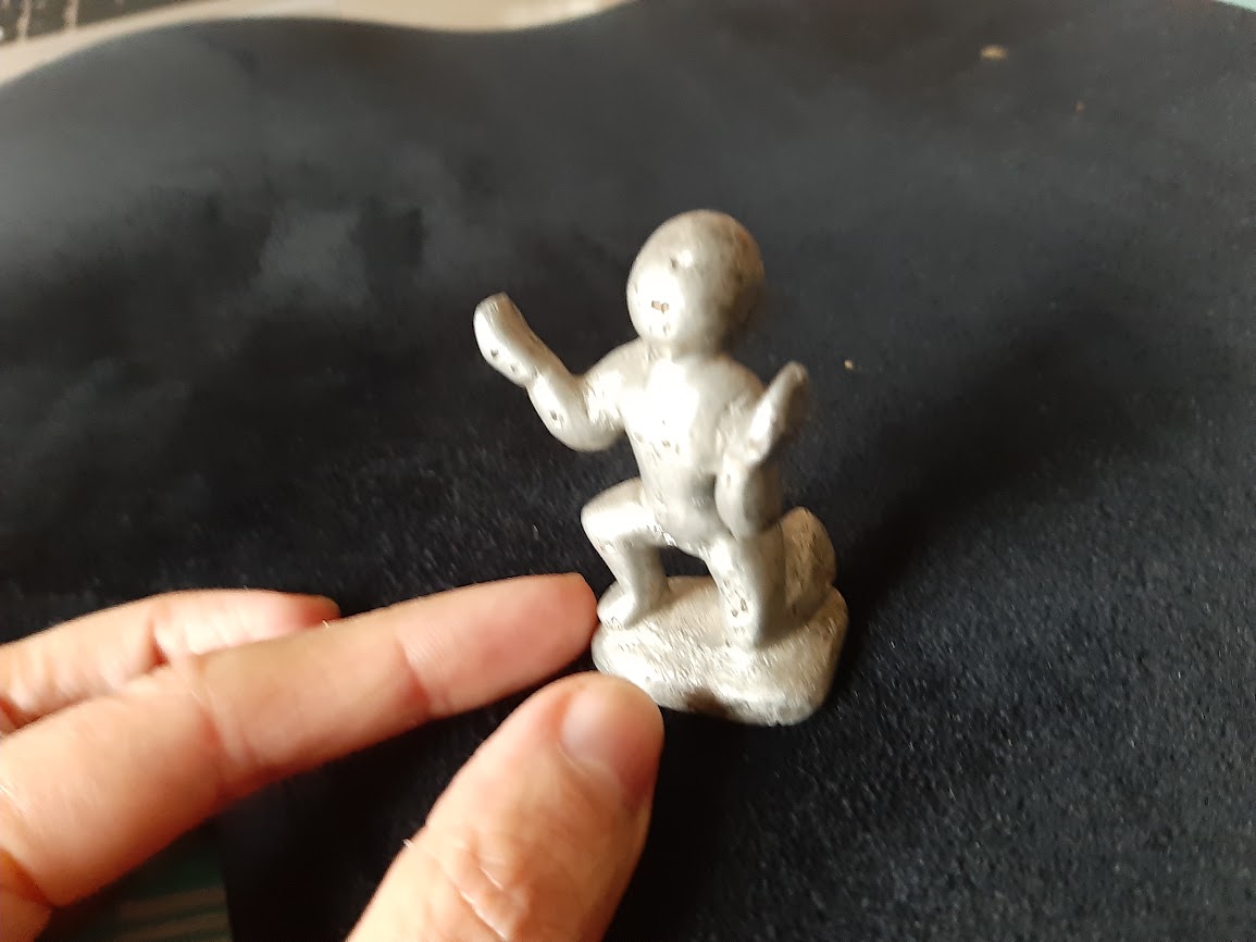 Small Faceless Metal Figurine (Photo From The Back). Seems To Be Praying. Found In A Barn Many Years Ago
