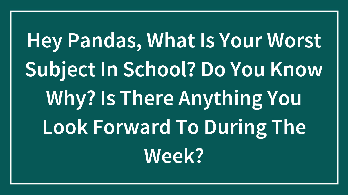 Hey Pandas, What Is Your Worst Subject In School? Do You Know Why? Is There Anything You Look Forward To During The Week?