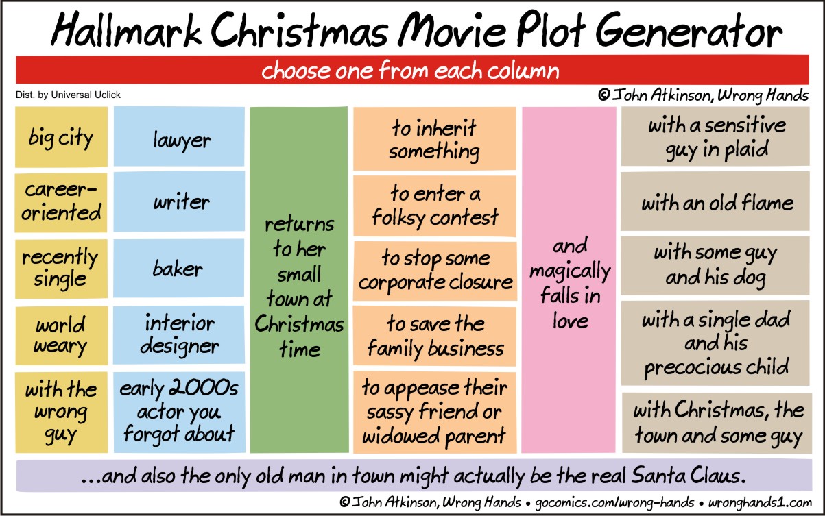 Load More Replies...The cartoon Hallmark Christmas Movie Generator by The Wrong hands did this brilliantly. See picture below. hallmark-c...ee0007.jpg