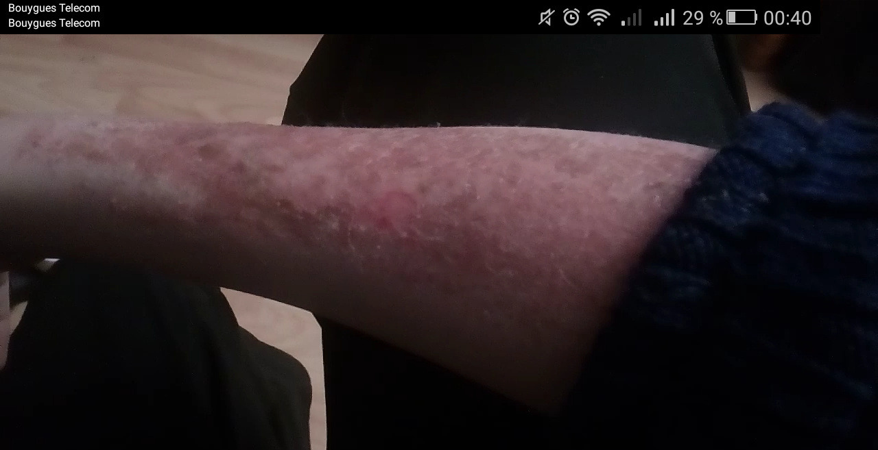 My back melted off and was oozing, I couldn't see properly it was my back, thankfully he left this evening to go fetch/take my grandparents from/to the airport so I could take care of it a little (I.E. let it in the air instead of putting a shirt over it to hide it. I don't know if it was second or third burn as I couldn't go to the hospital as people coudn't learn about it.