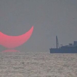 Man Rows Before Total Sunset