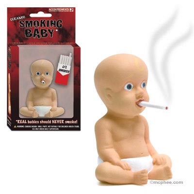 I enjoy having strange things. I have a lunchbox with an old syphilis ad printed on each side. (A lunchbox reading: Syphilis: who have YOU exposed?) I have the demo oxygen mask from plane safety demonstrations. A hideously ugly monkey on a surfboard bank that I bought in Tijuana for $3. (That could be a San Diego thing.) I have a vase I bought at an art show that has a dude in a sparkly suit on one side and on the other, same dude in y-fronts. (I display the y-front side.) Vials of cat whiskers separated by cat. Some really bizarre artwork. My mother's wedding dress and veil--it's strange because I've never wanted to get married but somehow I can't part with it. I will probably paint it one day.