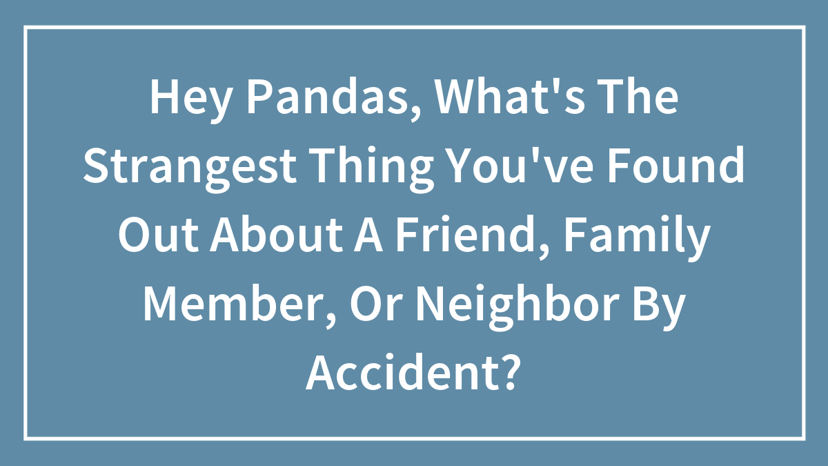 Hey Pandas, What’s The Strangest Thing You’ve Found Out About A Friend, Family Member, Or Neighbor By Accident? (Closed)