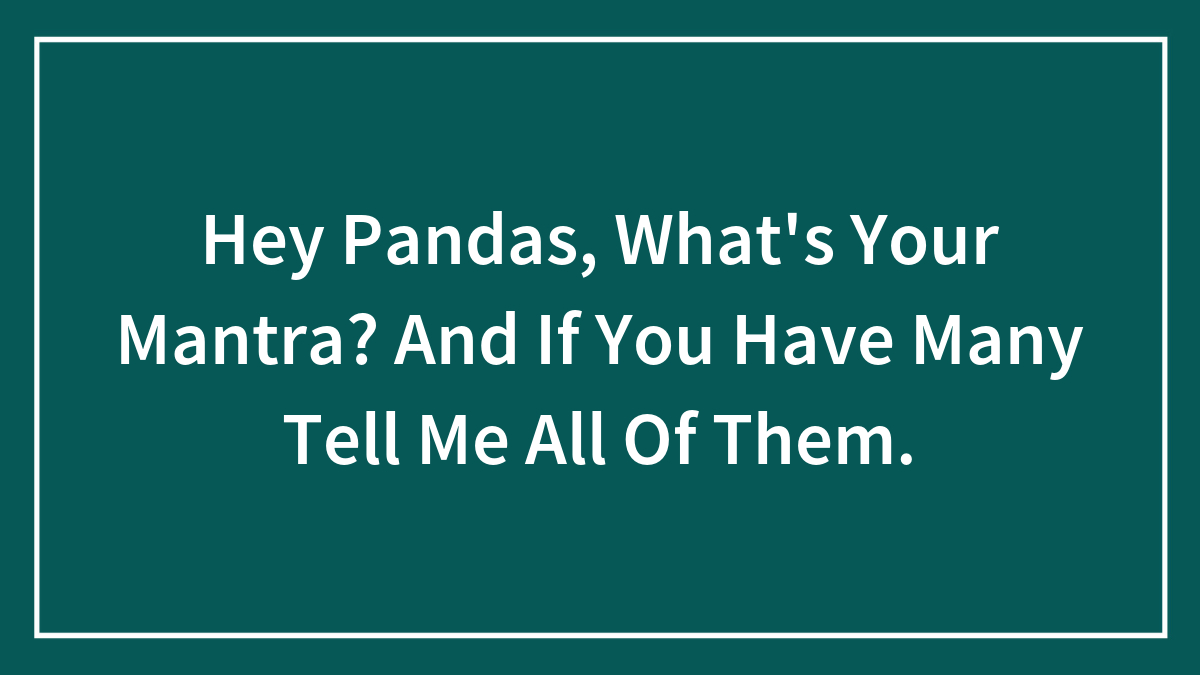 Hey Pandas, What’s Your Mantra? And If You Have Many Tell Me All Of Them.