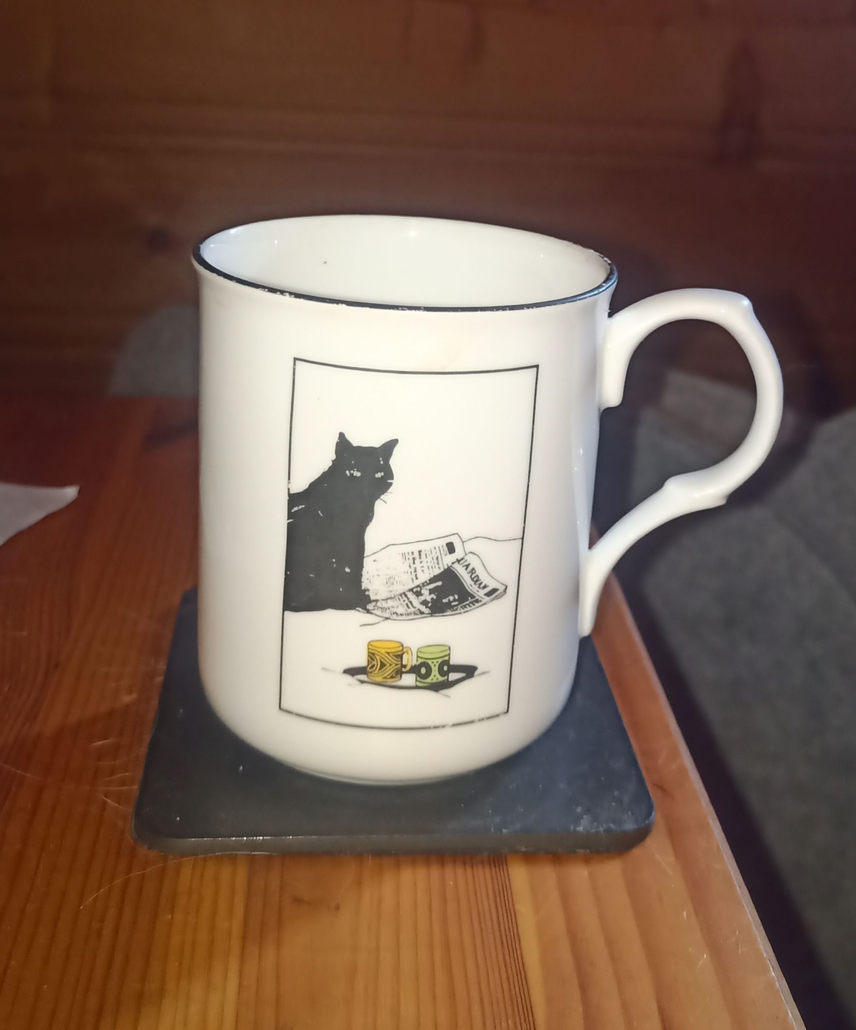 Black Cat Mug By Sue Boettcher. Got Two Of These Left, Used To Have Four, I Think. Lovely Fine Bone China. Must Be 35 Years Old By Now